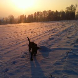 Das Wetter war wunderschön und Julia freute sich jeden Tag im Schnee herumtollen zu können. Auch die Aufgaben hat sie sehr motiviert gelöst, war schnell und liess sich gut führen. Nur das lange Warten alleine im Warteraum hat ihr überhaupt nicht gepasst und nach 5 anstrengenden Trainingstagen ist sie nun doch auch etwas müde; darf sich nun aber auch wieder erholen, während langweiligen Stunden im Atélier. Highlight der Woche war auch diesmal wieder der Heliflug – aufregend für Hund und Hundeführer. :o)