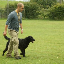 Mit einem “number 13 on my right, number 14 on my left” begrüsste uns Jamie Bettinson sehr dynamisch und man merkte gleich, Jamie ist voll und ganz in seinem Element. Es vielen zwei einzelne Markierungen, die jeder Hund einzeln holen sollte, zuerst vor einem kleinen Hügel, dann dahinter. Julia hatte nicht so genau markiert wie ich dachte, ging beide Male zu weit rechts und ich musste sie zur Markierung handeln. Dabei war ich für Julia und Jamie etwas zu langsam, aber wir kamen zum Ziel und 12 Punkten.