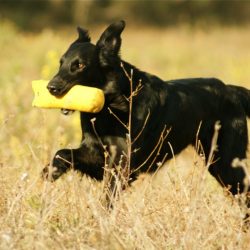 An der selben Stelle gab es erneut eine Landmarkierung und ein Blind, welches nachgelegt wurde. Als ich Julia schickte, verschwand sie hinter den Bäumen, so dass ich sie nicht mehr sehen und nur noch hoffen konnte. Die Markierung hatte sie sehr schnell, beim Blind ging’s etwas länger und ich pfiff sie “auf Verdacht” zurück. Sie kam mit dem Dummy im Fang angerannt und ich konnte sie schön abfangen. Wir erzielten 19 Punkte und der Richter meinte, ich könne mich glücklich schätzen mit meinem Hund. :o)